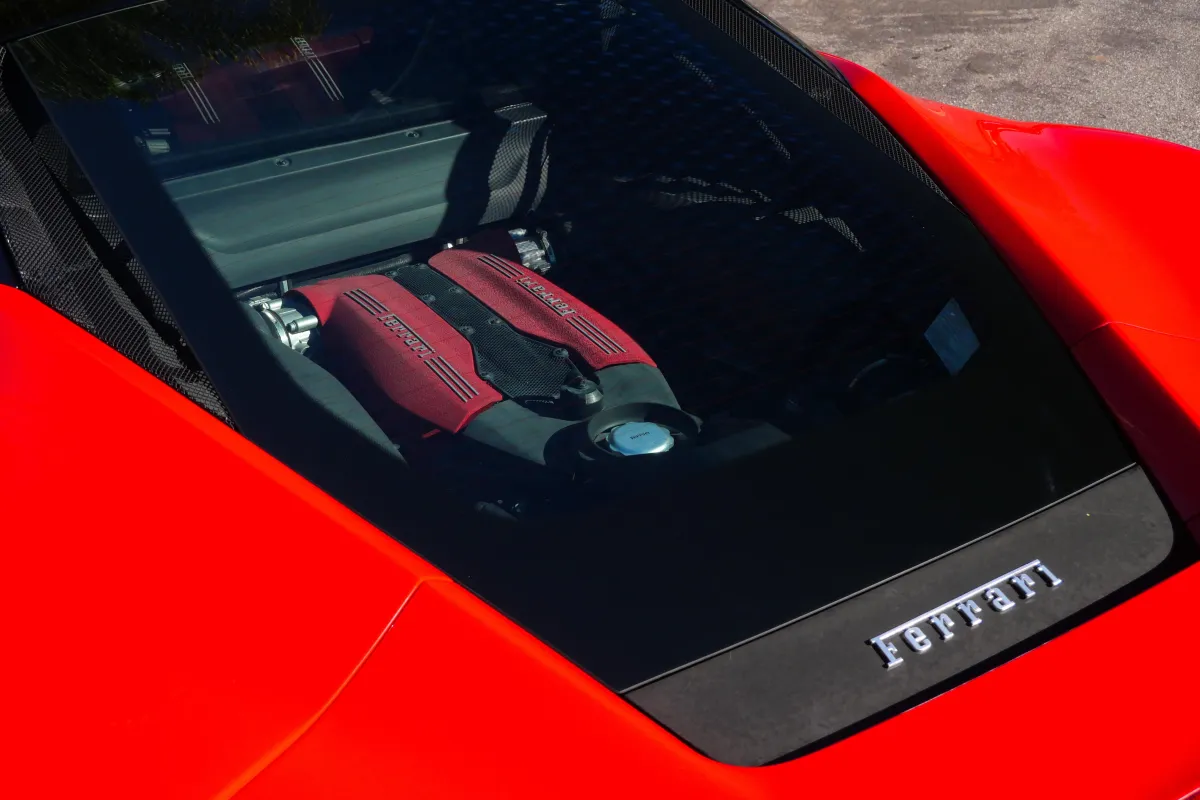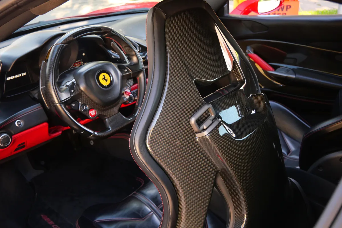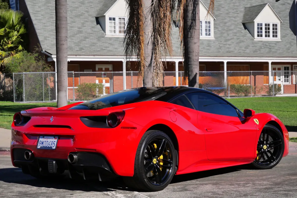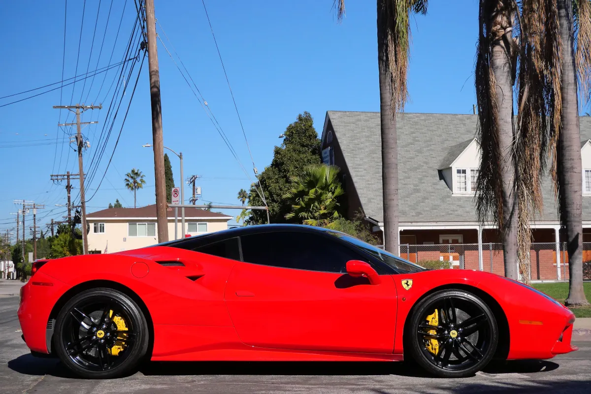 A Ferrari 488 with a red exterior and black interior is pure Italian performance. The iconic red paint highlights its sleek, aerodynamic design, while the black interior keeps the cabin clean, sporty, and driver-focused. It’s a timeless combination that perfectly matches the 488’s aggressive speed and precision.
