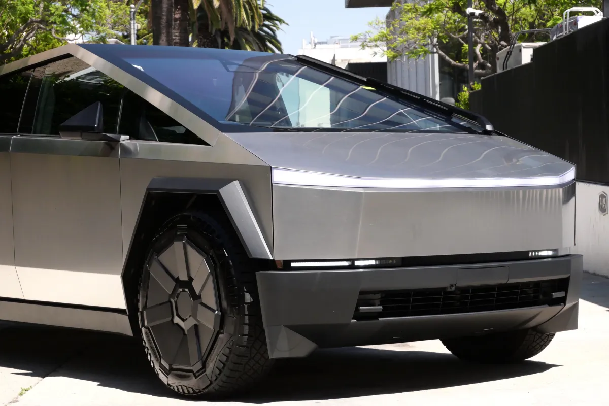 The Tesla Cybertruck is an all-electric, battery-powered light-duty pickup truck that looks less like a traditional vehicle and more like a low-polygon prop from a 1980s sci-fi movie. It is defined by its sharp, angular "exoskeleton" and extreme performance metrics.